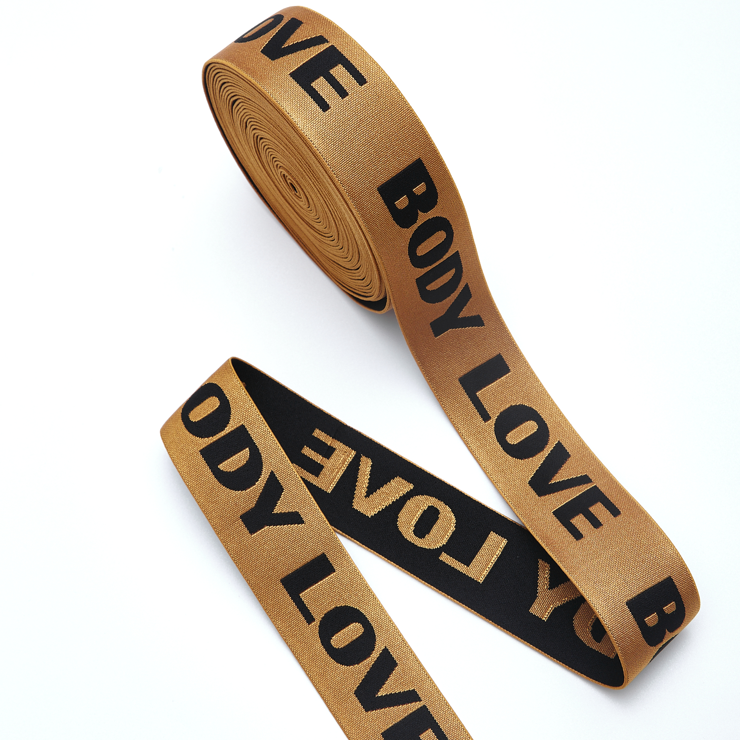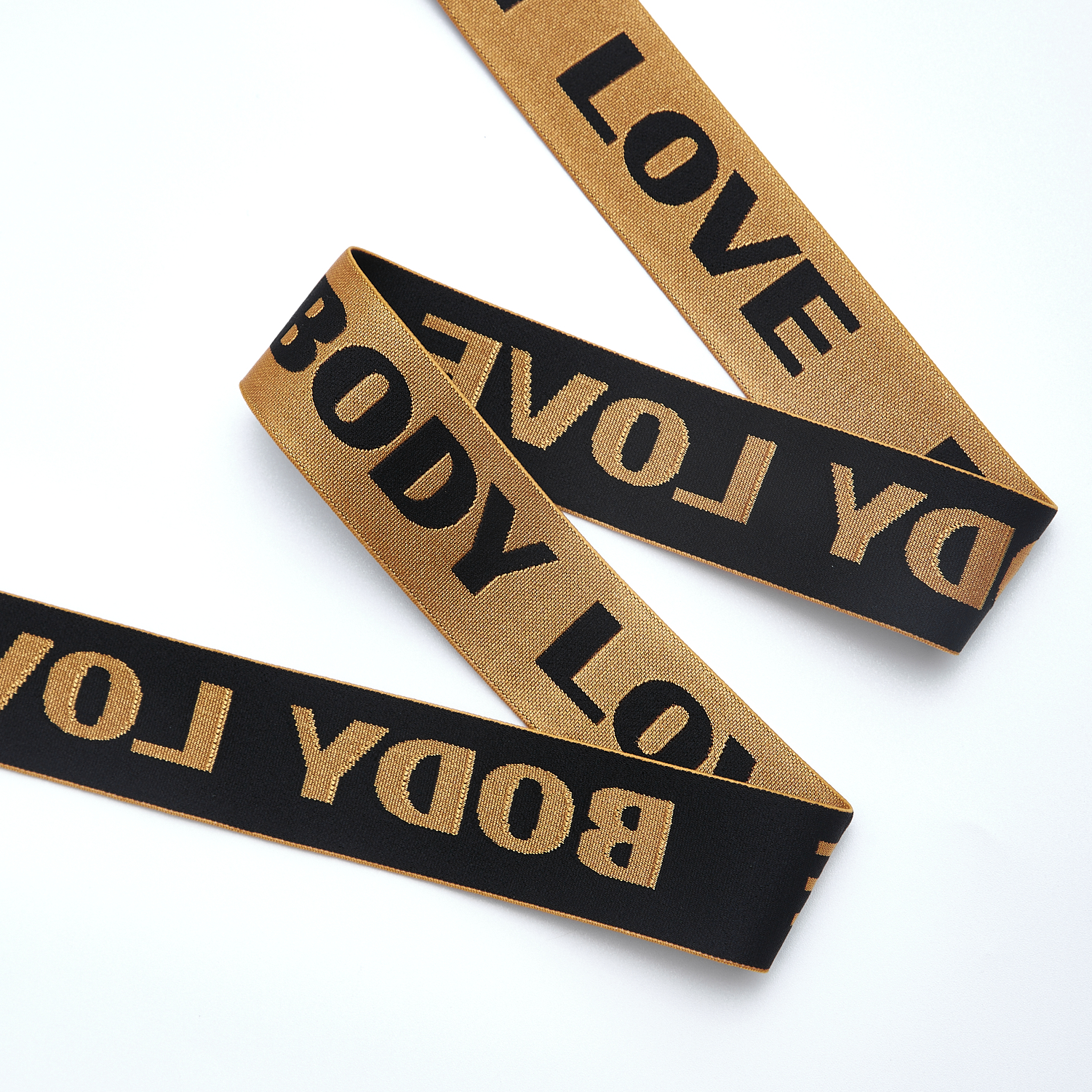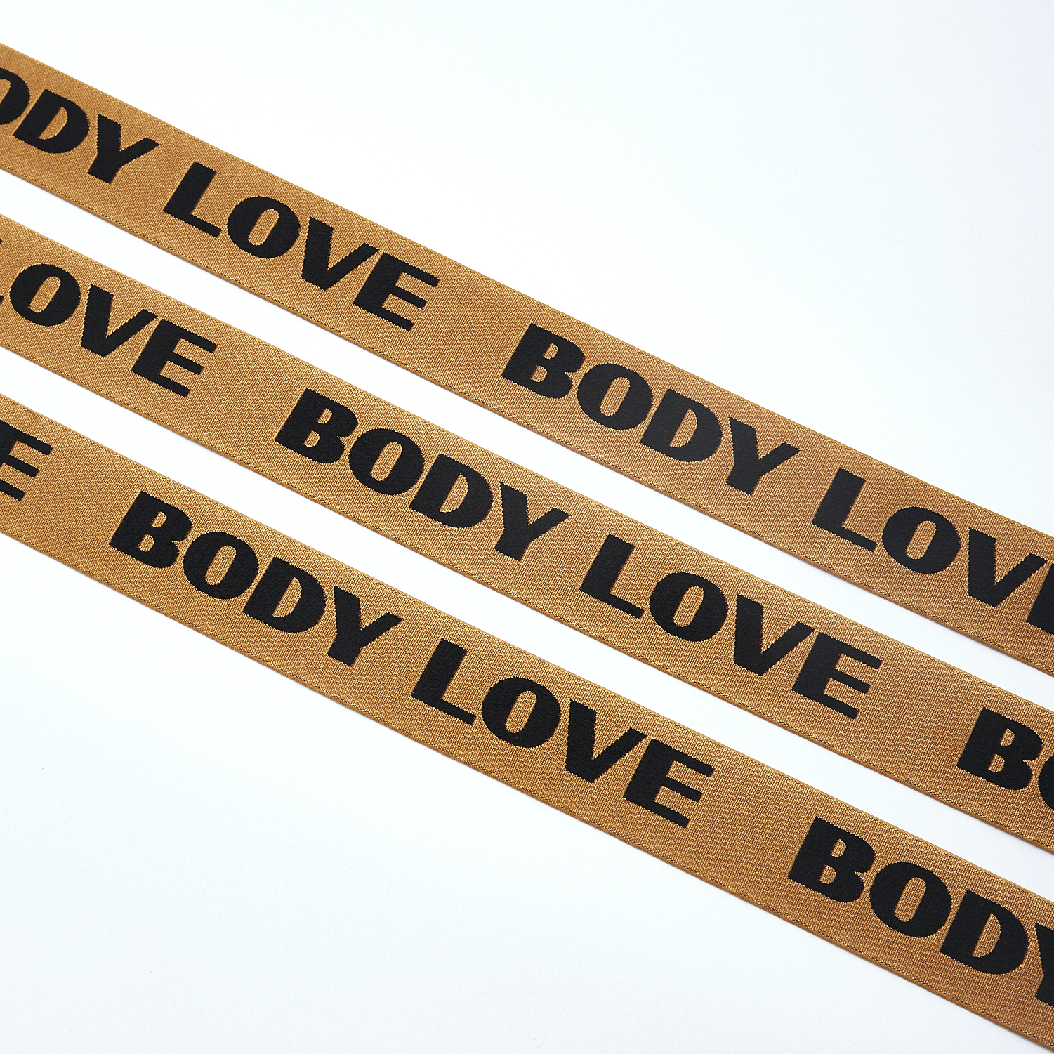 Double-sided two-color design: The webbing presents different color styles on both sides, and one side is a textured brown base with black The "BODY LOVE" letter, and the other side is a classic black background with gold letters, which can be used for dual purposes to meet diverse design needs.